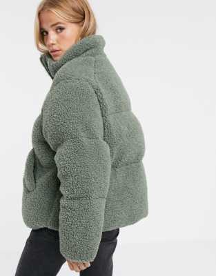 ASOS DESIGN fleece puffer jacket in sage ASOS Very well made.