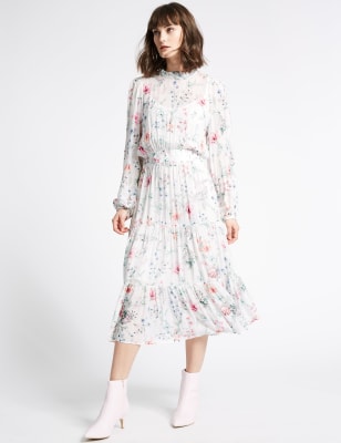 Floral Print Long Sleeve Midi Dress Limited Edition M S Very well made.