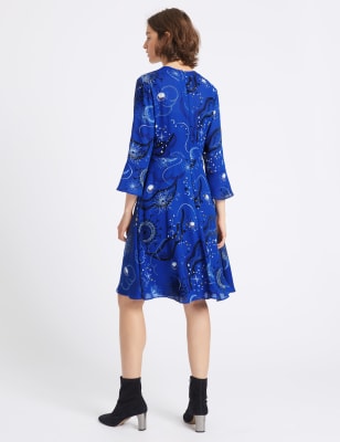 Printed Tie Side Flared Sleeve Midi Dress Limited Edition M S Very well made.