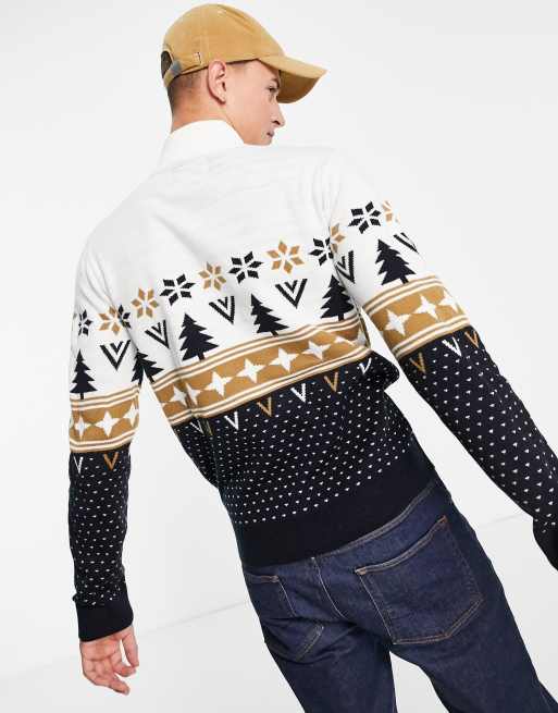 Brave Soul cratchit Quarter Zip Neck Fairisle Christmas Jumper Very well made.