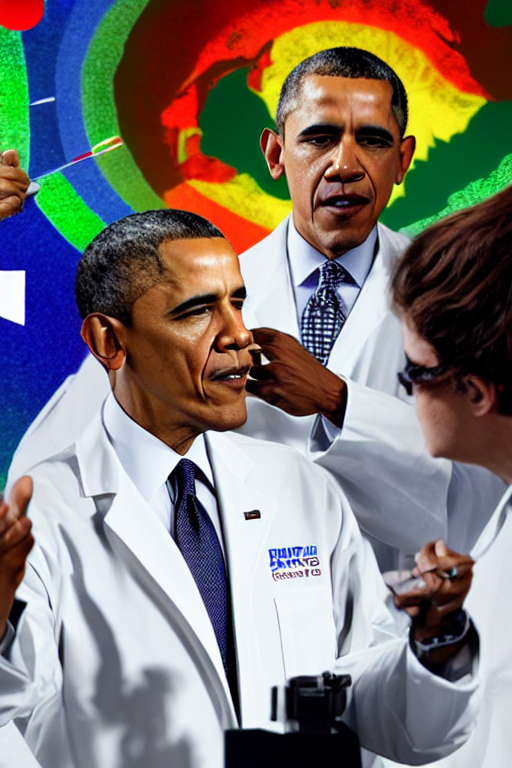 prompthunt president Obama wearing a lab coat injecting a rainbow Very well made.
