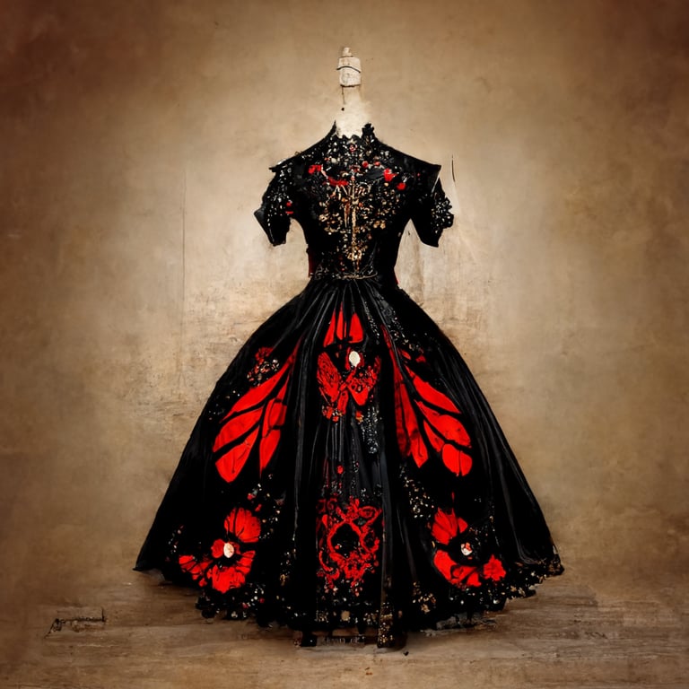 prompthunt Gothic ornate dress made of red butterfly elements on Very well made.