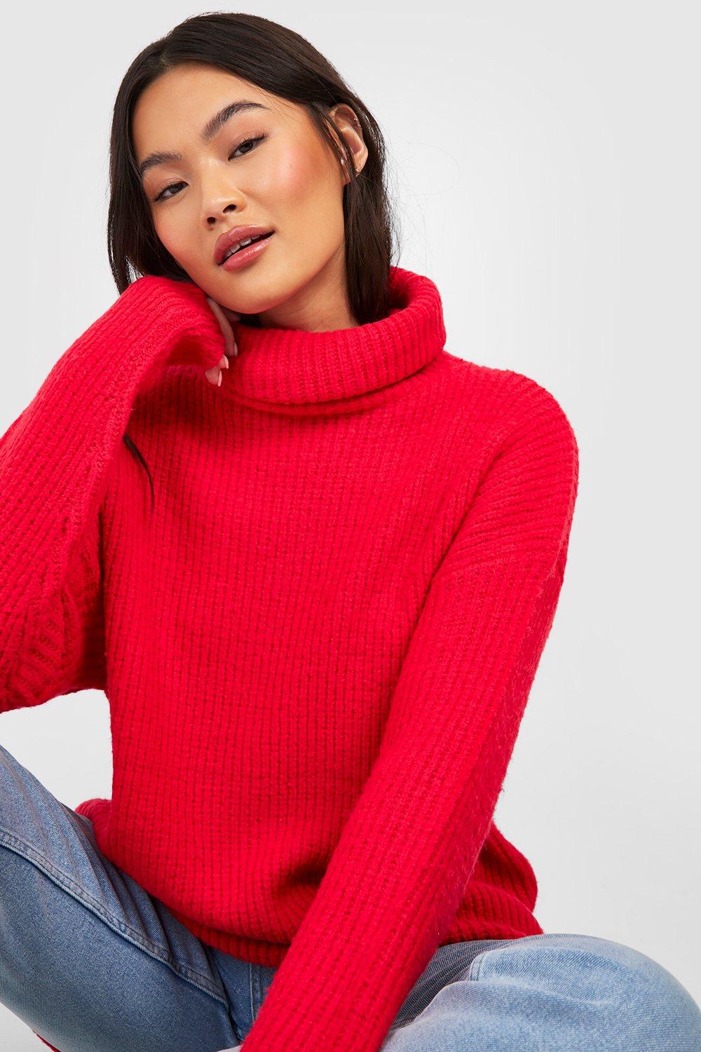 Women s Roll Neck Oversized Knitted Jumper Boohoo UK Very well made.