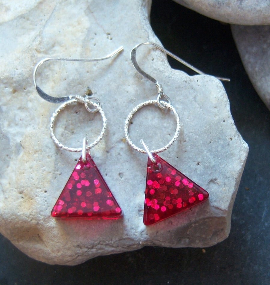 Red resin traingle earrings with sterling silver Folksy Very well made.