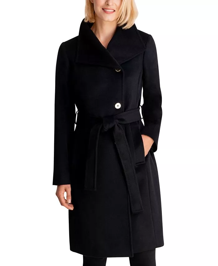 Michael Kors Women s Petite Asymmetrical Belted Wool Coat Red Very well made.