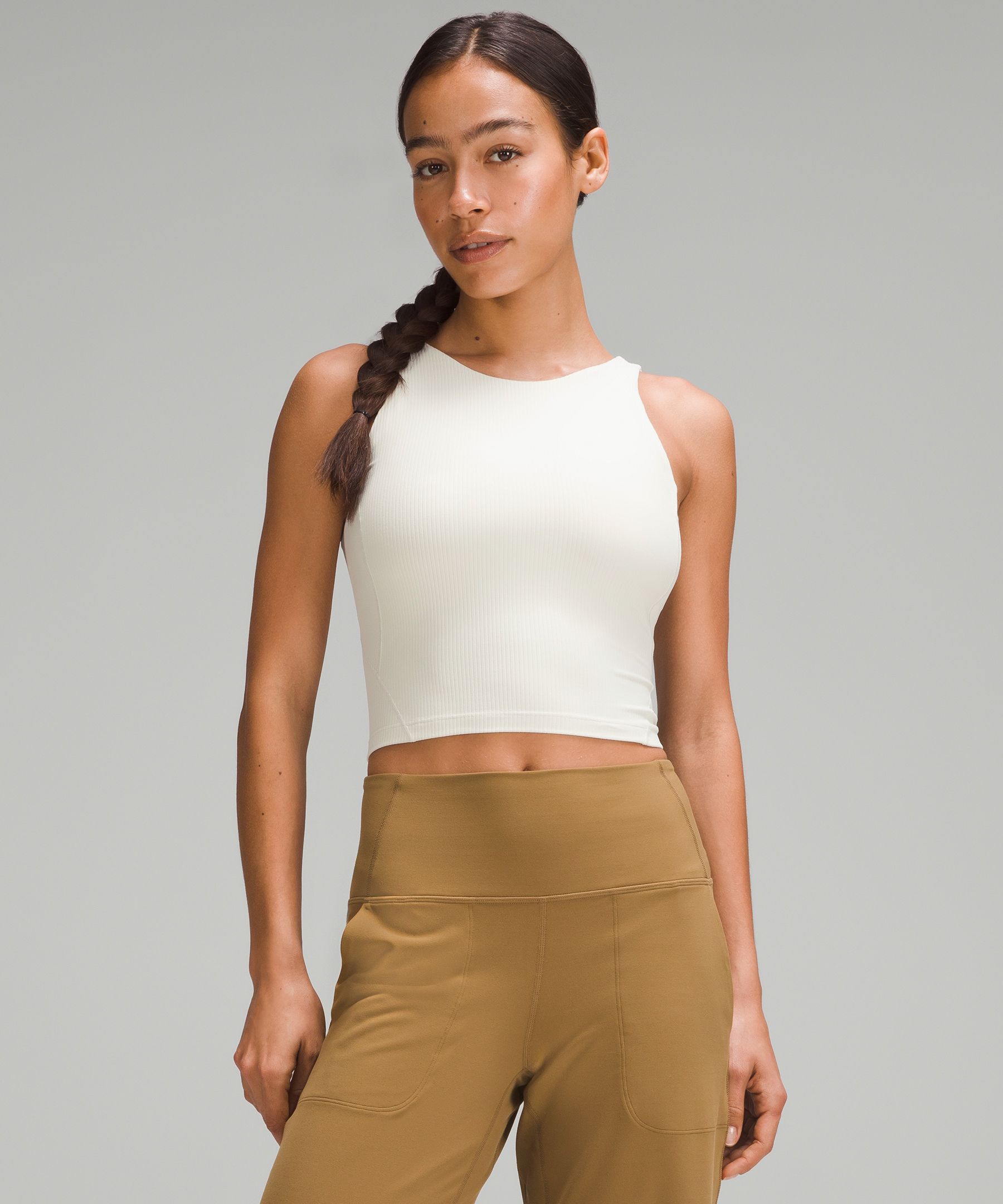 Women s White Seamless Tank Top High Neck Rib Crop Ally Fashion Very well made.