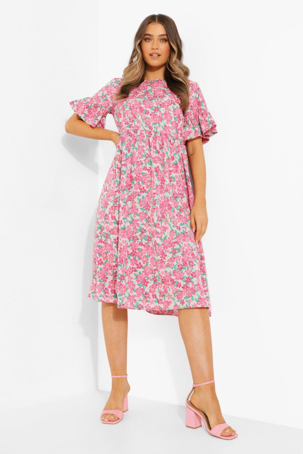 Ellen Floral Print Midi Dress Forest Green Oh Hello Clothing Very well made.