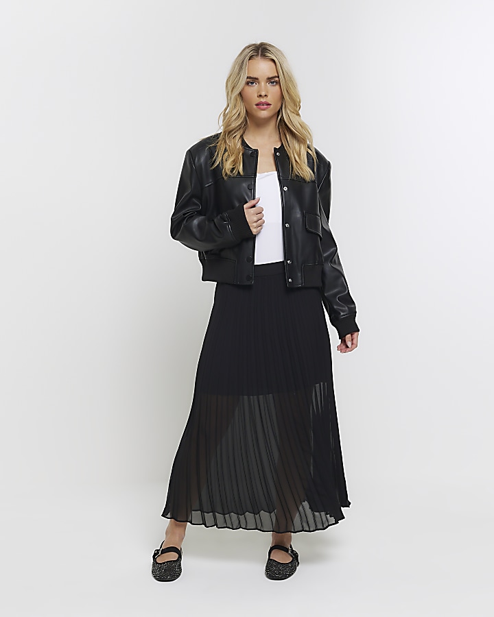 Petite Black Pleated Sheer Midi Skirt River Island Very well made.