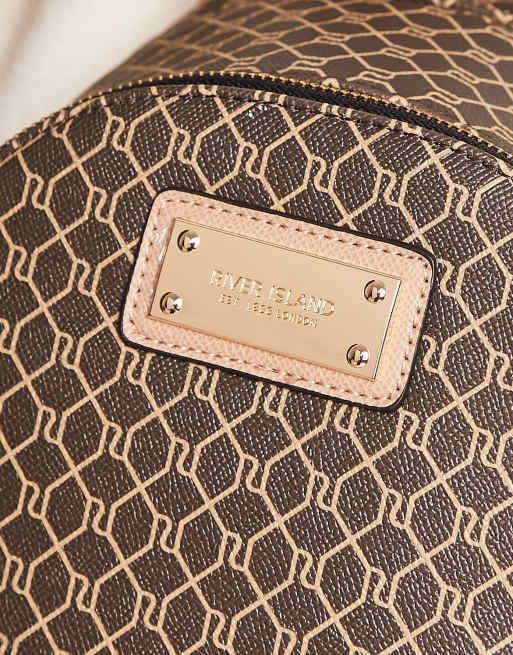 River Island Rucksack in Braun mit Monogramm Muster ASOS Very well made.