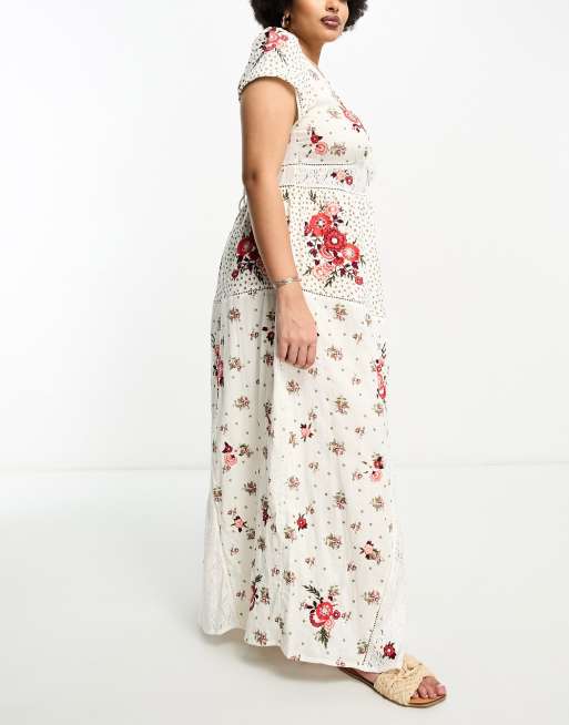River Island Plus maxi dress with pathwork embroidery In cream floral Very well made.