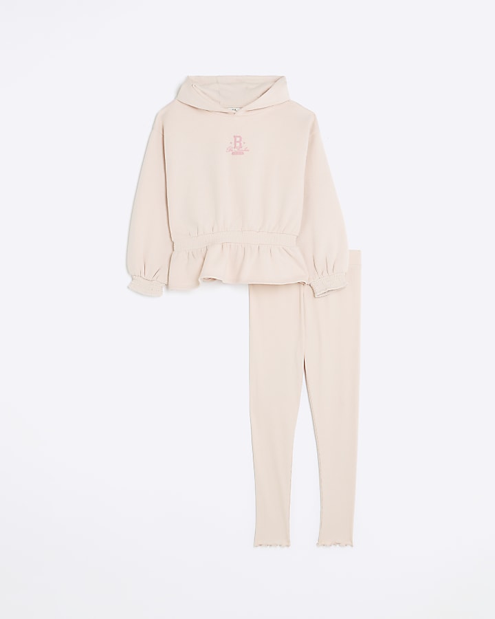Girls pink rib peplum hoodie and leggings set River Island Very well made.
