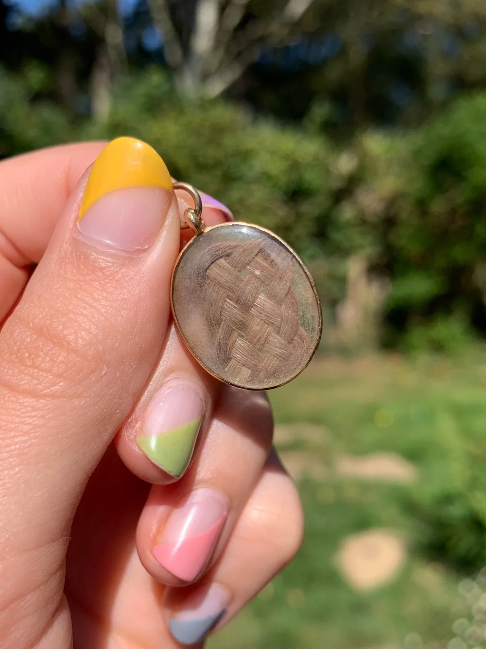 Antique woven hair gold locket pendant Gembank1973 Very well made.