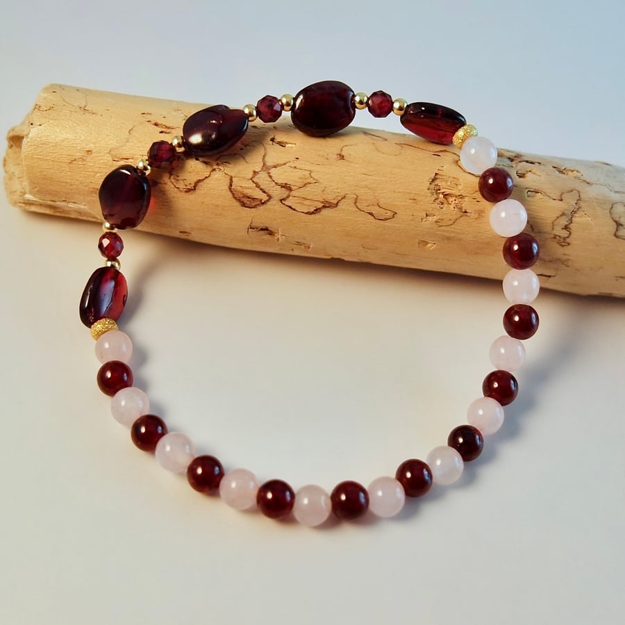 Garnet And Rose Quartz Bracelet January Birthstone Handmade In Devon Very well made.
