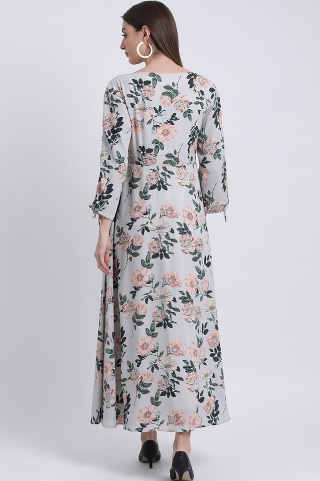 Floral Printed Maxi Dress With Belt Full Sleeve Round Neck For Very well made.
