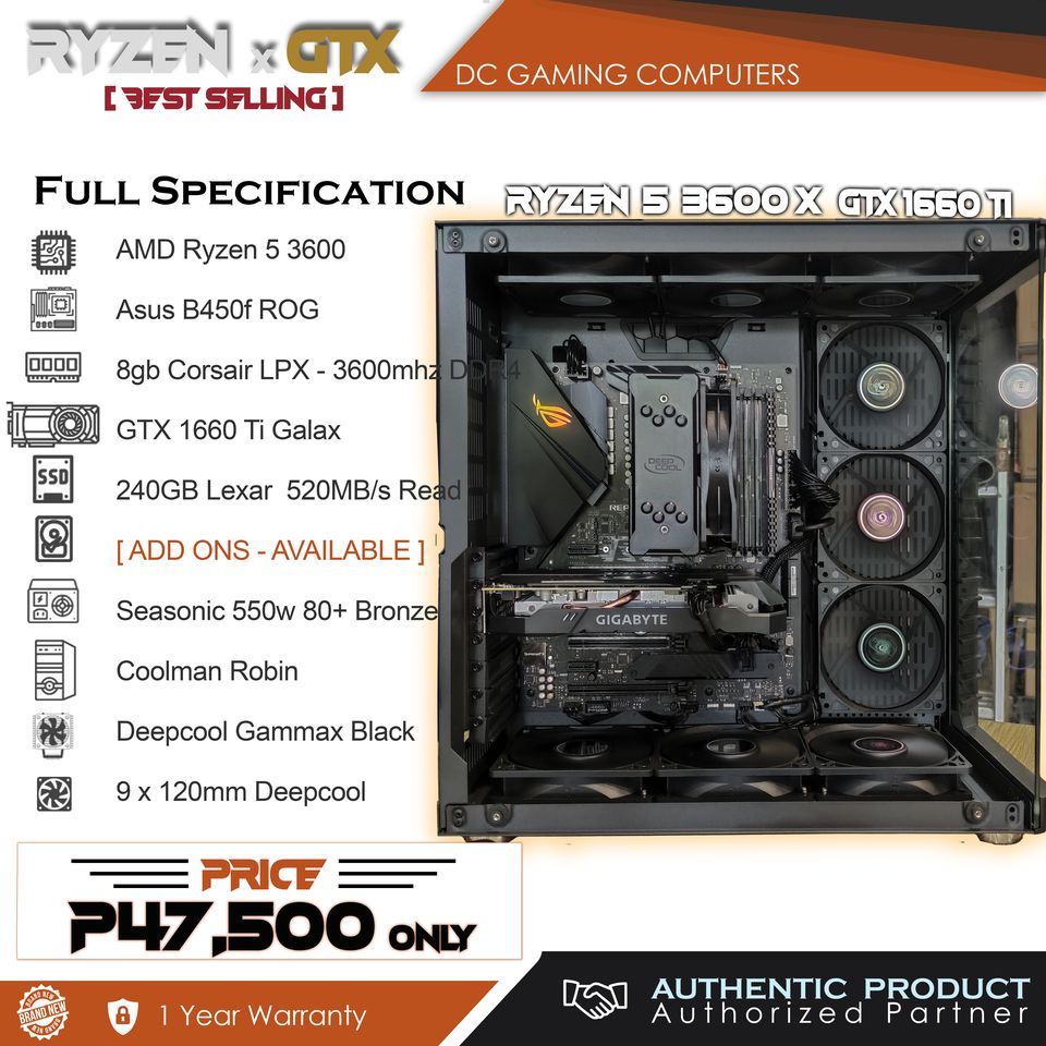 AMD Ryzen 5 3600 Gigabyte B450 MSI GeForce GTX 1660 Ti 6144MB Very well made.