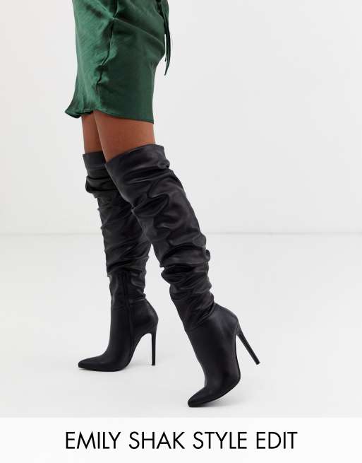 ASOS DESIGN Carlotta slouch stiletto knee boot in black Very well made.