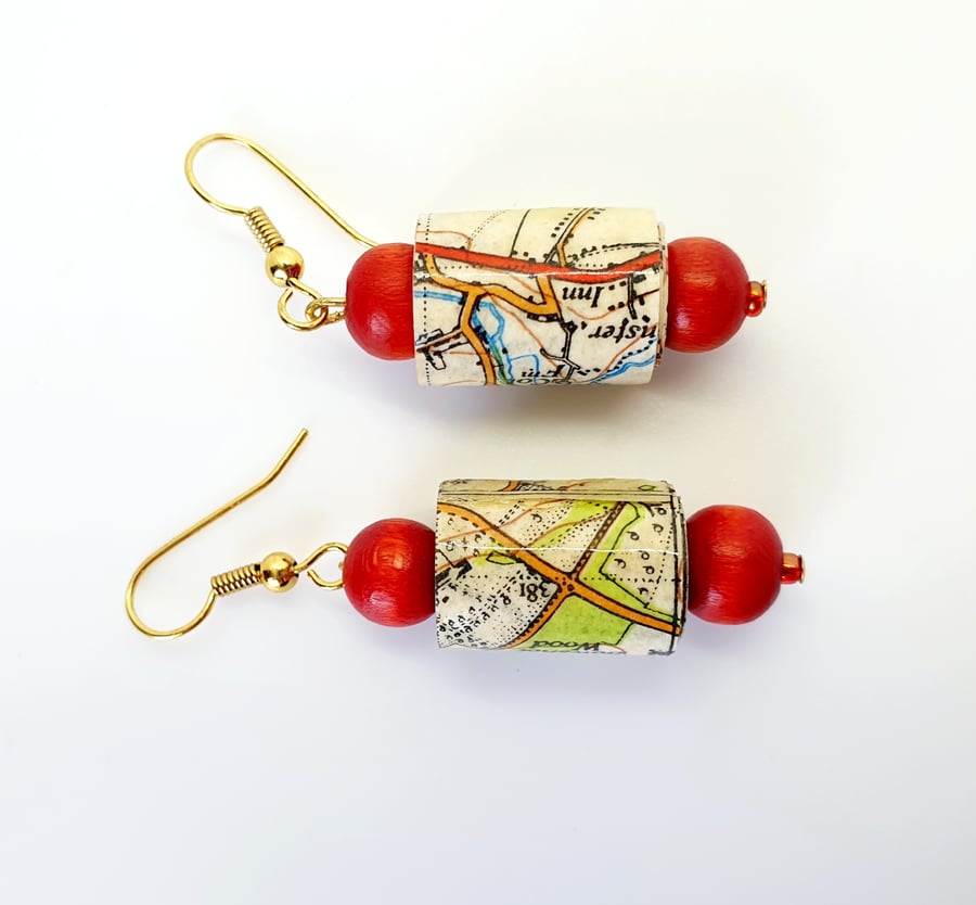 Small dangling paper beaded earrings made with Folksy Very well made.