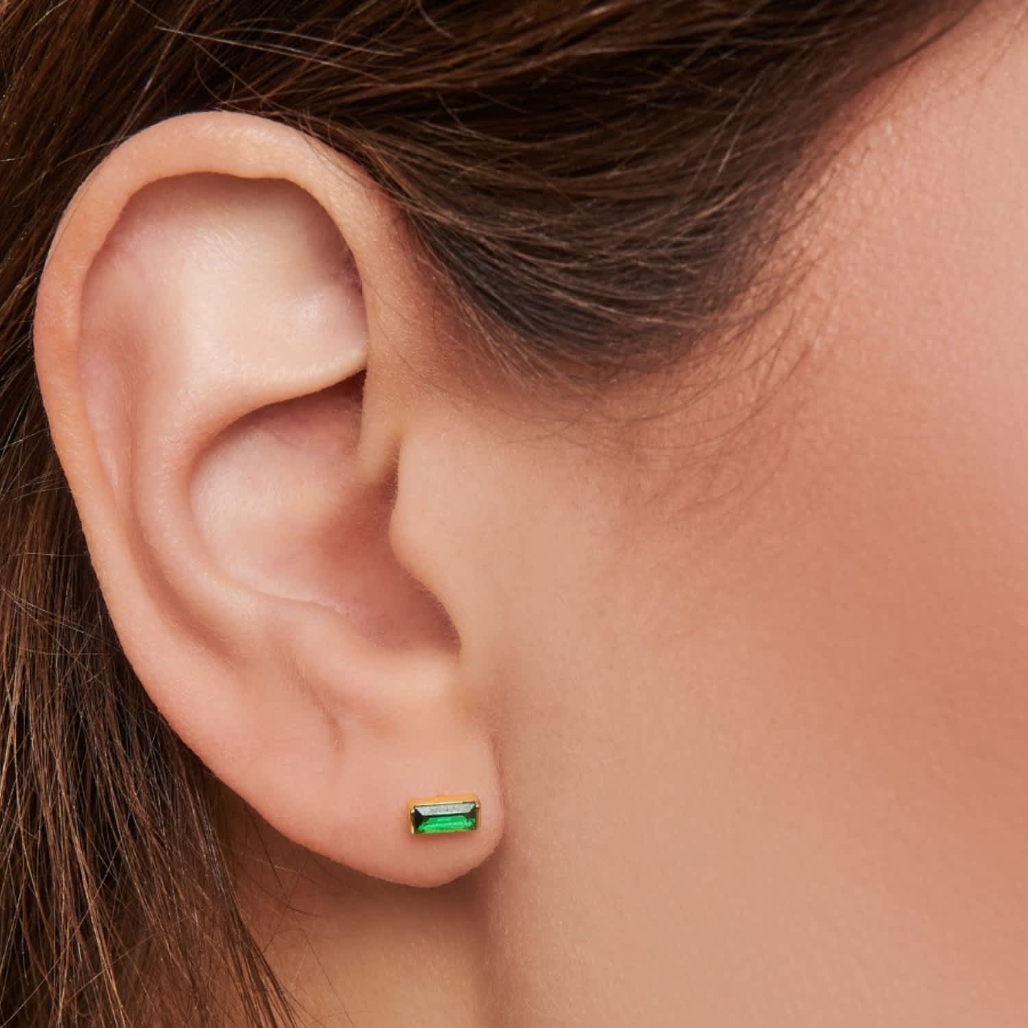 Emerald Green Tiny Studs 14K Gold Stud Earring May Birthday Very well made.