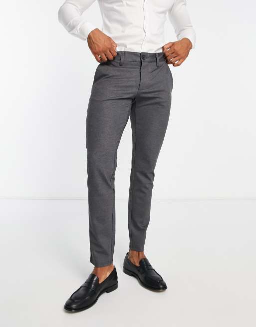 Only Sons slim fit smart herringbone jersey trousers in grey Very well made.