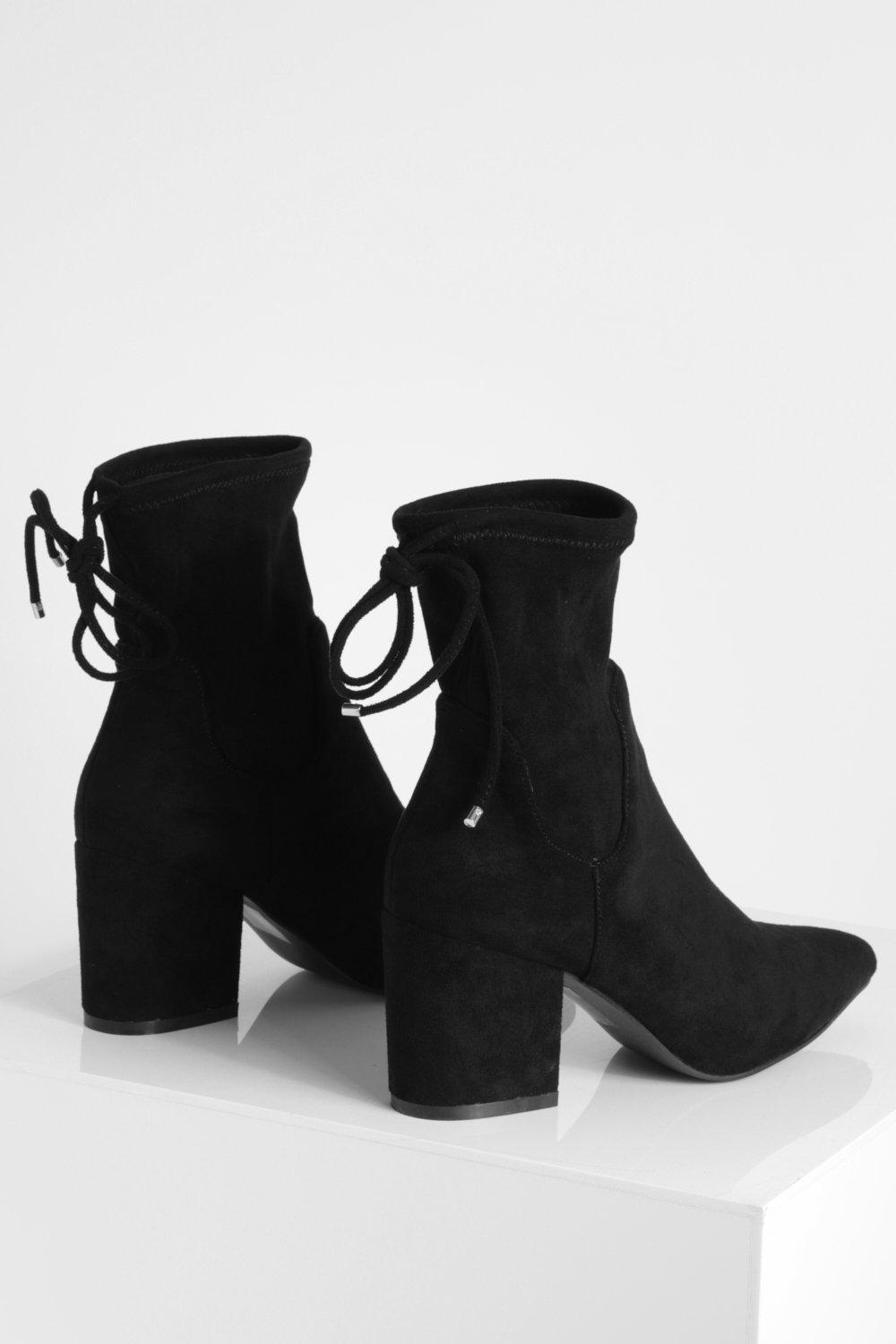 Block Heel Ankle Tie Sock Boots boohoo Very well made.