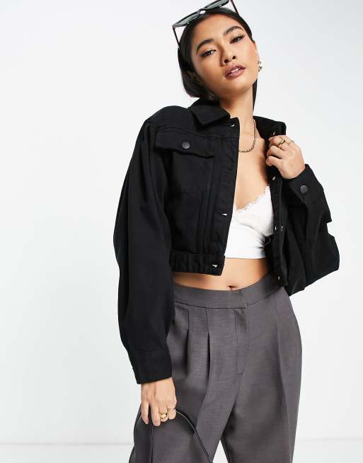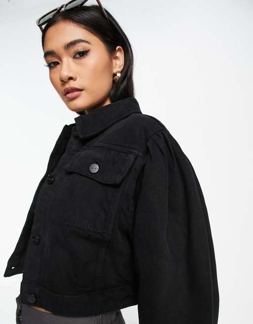 Waven ebba balloon sleeve trucker cropped denim jacket in solid black Very well made.