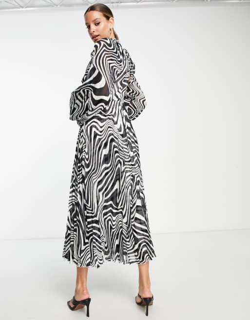 ASOS DESIGN Tall knot front high neck cut out pleated midi dress in textured stripe Very well made.