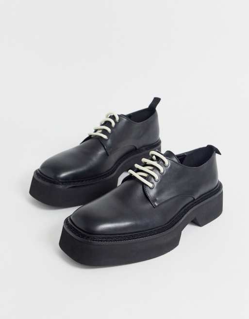 ASOS DESIGN lace up square toe shoes in black leather with block colour chunky sole Very well made.