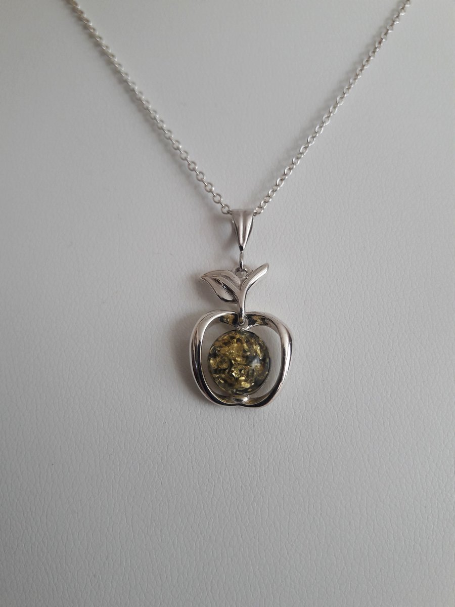 Amber Green Apple Necklace. Baltic Green Amber and Sterling Silver Necklace Very well made.