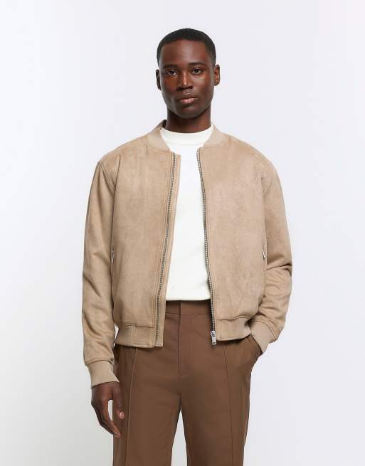 River Island Regular fit suedette bomber jacket in stone medium Very well made.