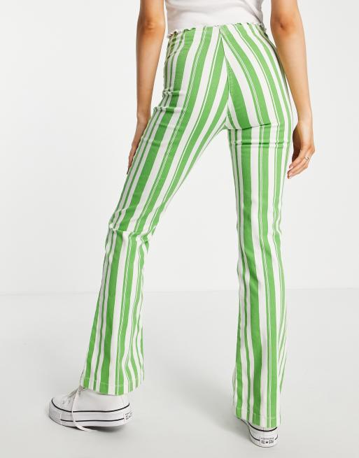 Topshop high waist stripe print flared trouser with front pockets in green Very well made.