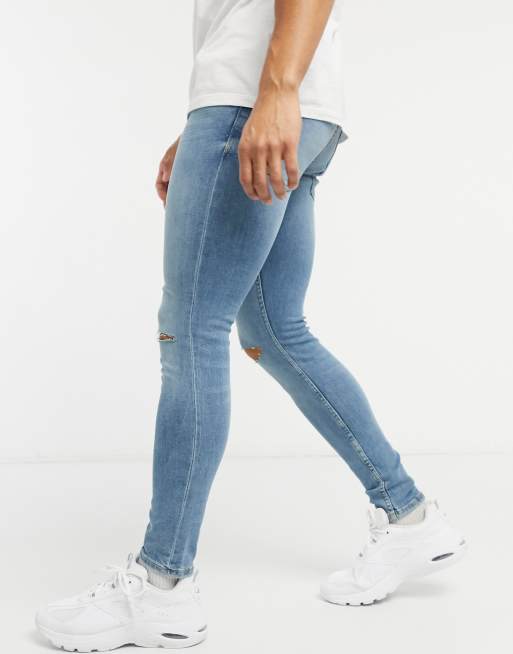 Bershka super skinny jeans with rips in bright blue Very well made.