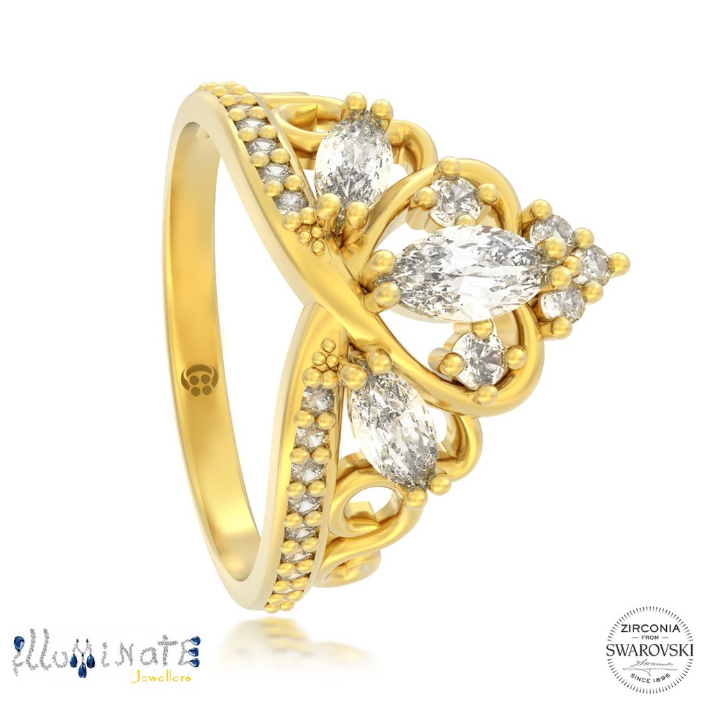 SWAROVSKI Zirconia Princess Athena Crown Ring with 916 GOLD Very well made.