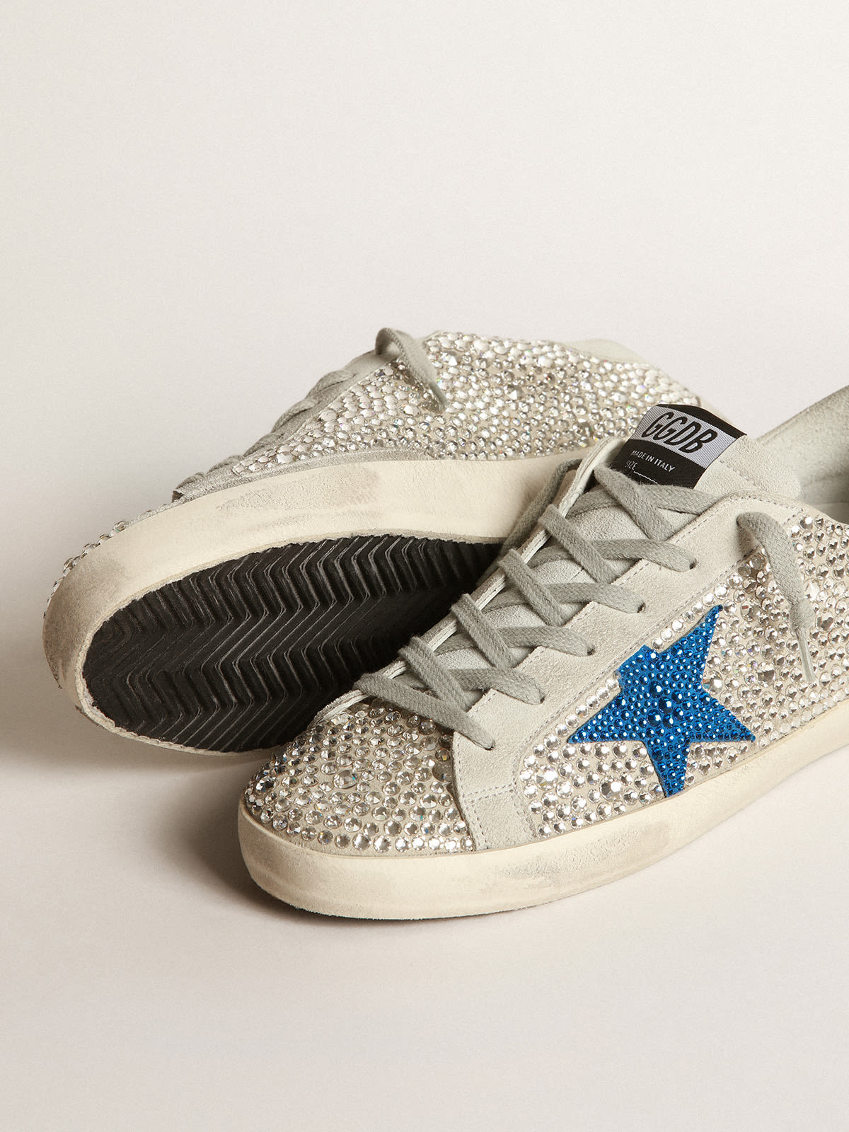 Super Star sneakers in gray suede and silver Swarovski crystals with blue suede and blue Swarovski crystal star Very well made.