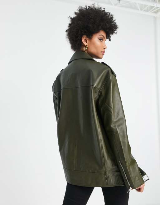 ASOS DESIGN Tall leather jacket in khaki ASOS Very well made.