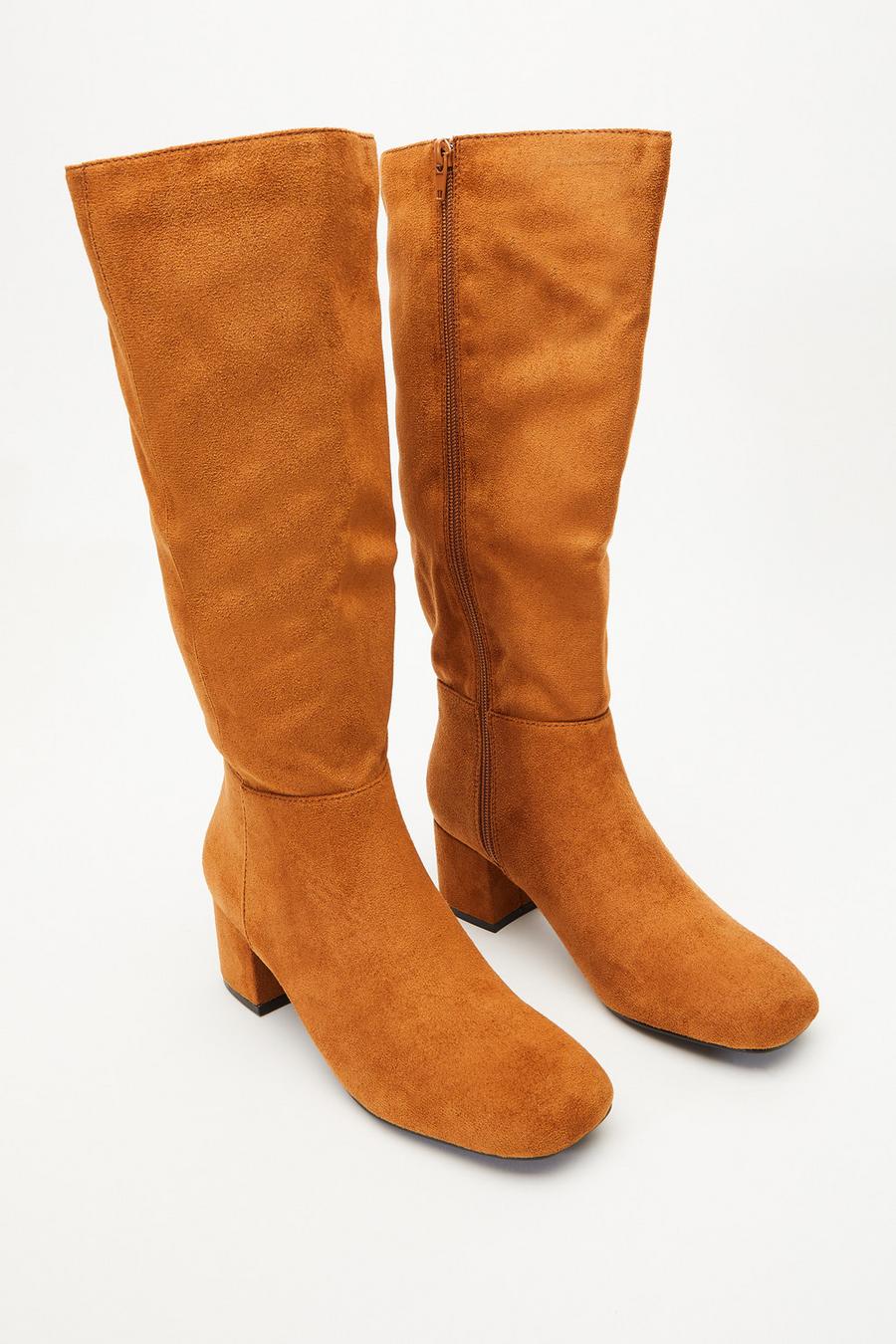 Suede Knee High Tall Boots Block Heel Mid Calf Riding Boots Very well made.