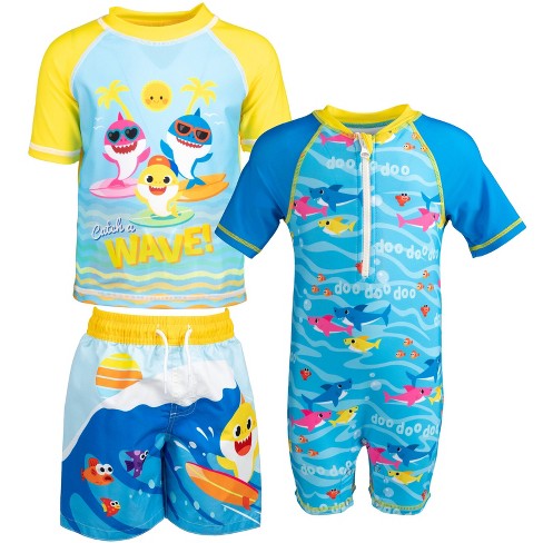 Pinkfong Baby Shark Toddler Boys 3 Piece Swimsuit Set Sunsuit Very well made.