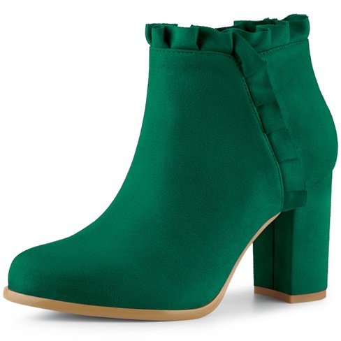 Perphy Women s Ankle Boots Ruffle Round Toe Chunky High Heel Very well made.