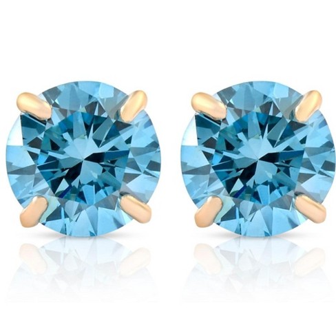 Pompeii3 Vs 2ct Blue Moissanite Studs 14k Yellow Gold Earrings Very well made.