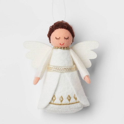 Felt Angel With Beaded Necklace Christmas Tree Ornament White gold Very well made.