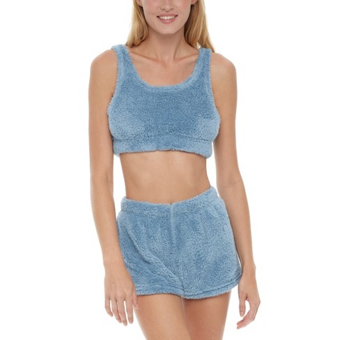 Adr Plush Crop Top And Shorts Women s Fleece Pajamas Set Faded Very well made.