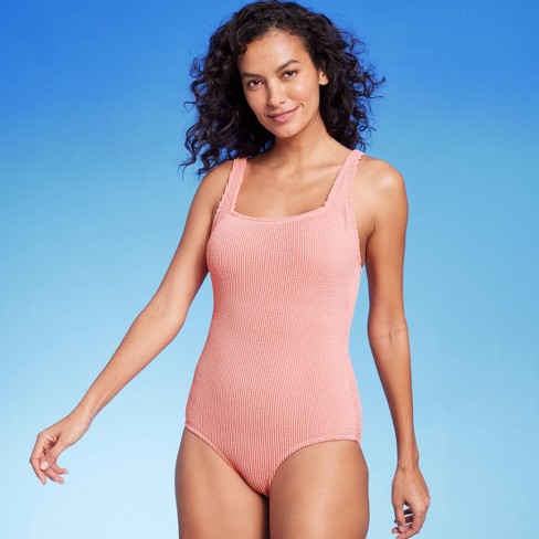 Women s Full Coverage Pucker Textured Square Neck One Piece Very well made.