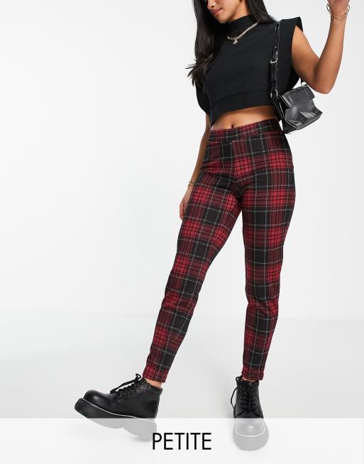 Noisy May Petite knitted slim trousers in red tartan check Very well made.