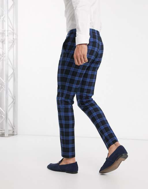 ASOS DESIGN wedding super skinny suit pants blue highlight tartan Very well made.