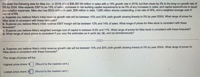 Consider the following data for Nike Inc. In 2018 Chegg Very well made.