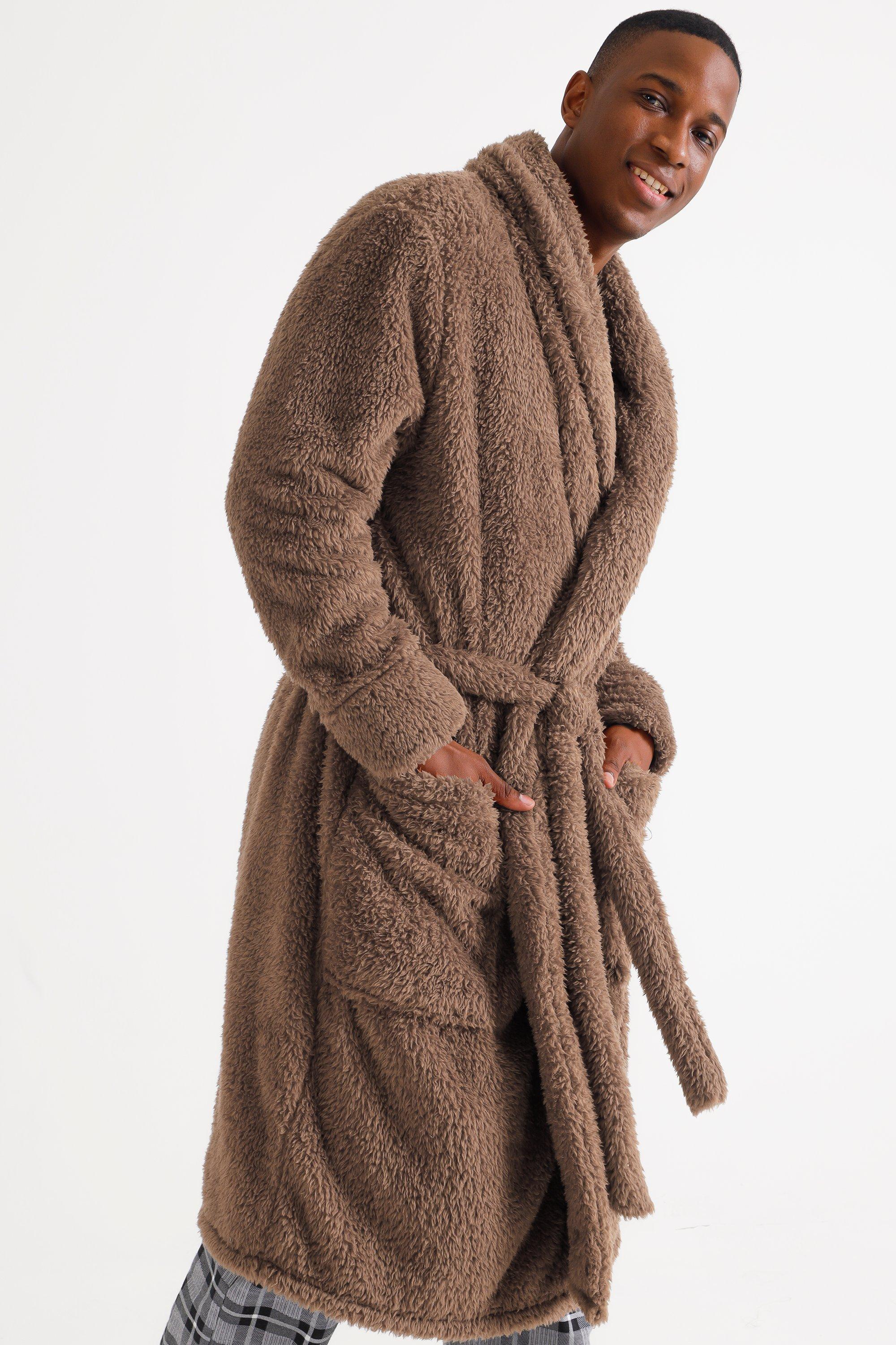 Mens Chunky Borg Fleece Dressing Gowns Fluffy Warm Robe Hooded M L XL 2XL UK NEW Very well made.