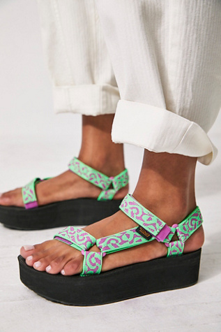 Teva Flatform Universal In Green Pink For Women Very well made.
