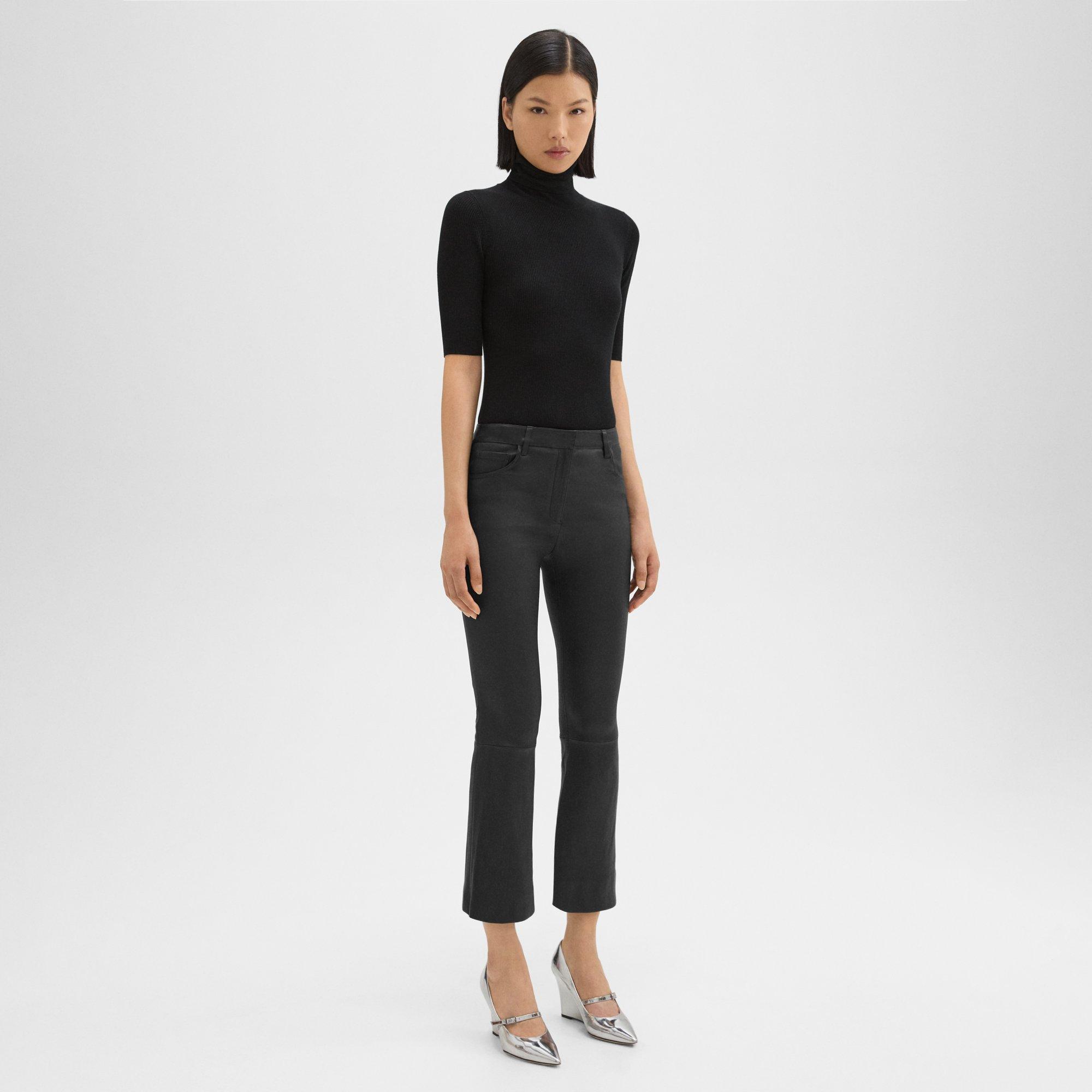 Theory Kick flare Cropped Leather Trousers in Black Lyst Very well made.