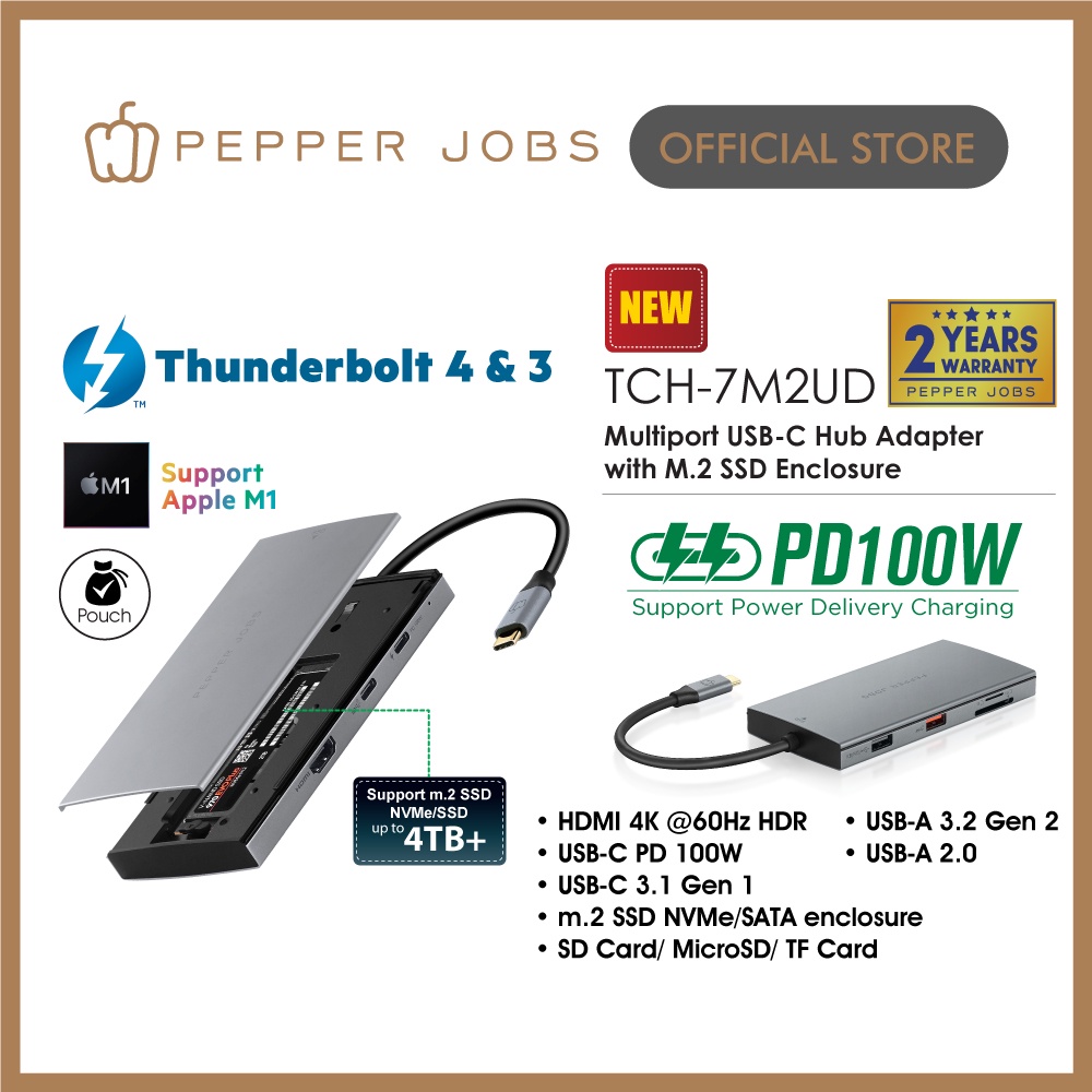 PEPPER JOBS TCH 7M2UD USB C Multiport Hub Adapter with M.2 SSD Very well made.
