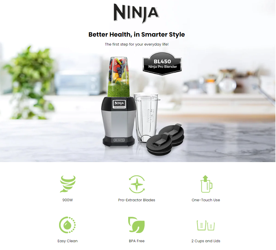 Nutri Ninja 900W Nutritional Blender with 4 Assorted Cups and Very well made.