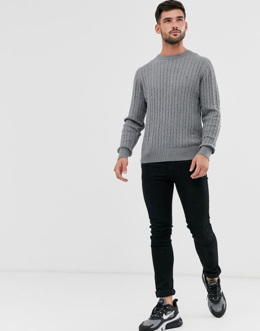Tommy Hilfiger classic cable knit crew neck jumper in grey Very well made.
